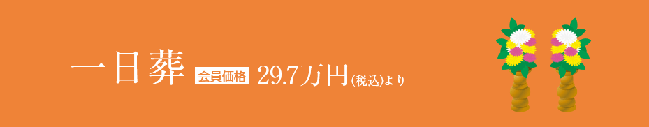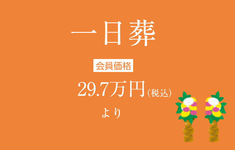 1日葬とは、通夜を行わず葬儀のみ行うプランです。通夜と初七日法要がなく費用を抑えることが出来て、無宗教でも行える葬儀・葬式の新しい形です。